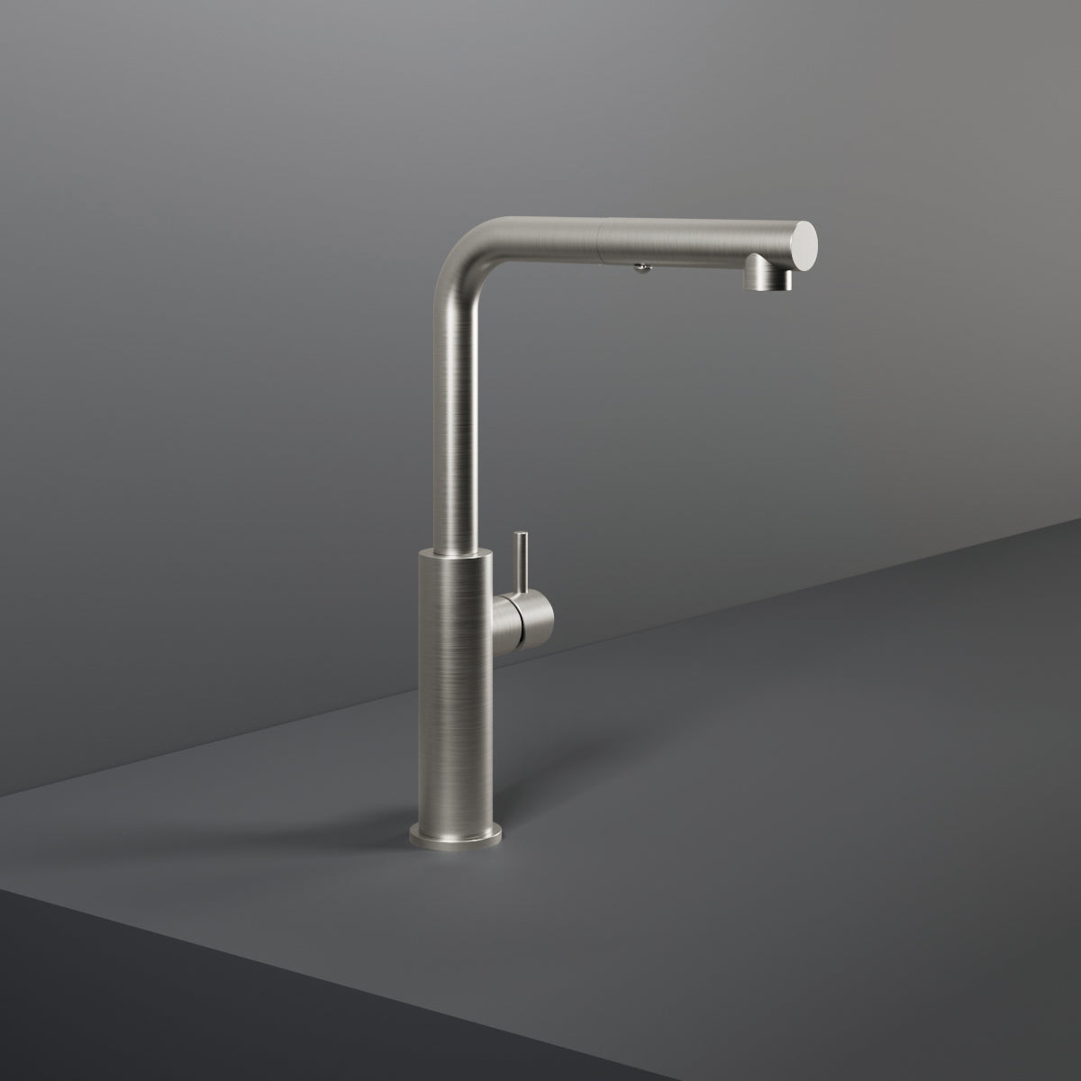 Miscelatore lavello in acciaio spazzolato 316 con bocca girevole e doccetta estraibile con doppio getto