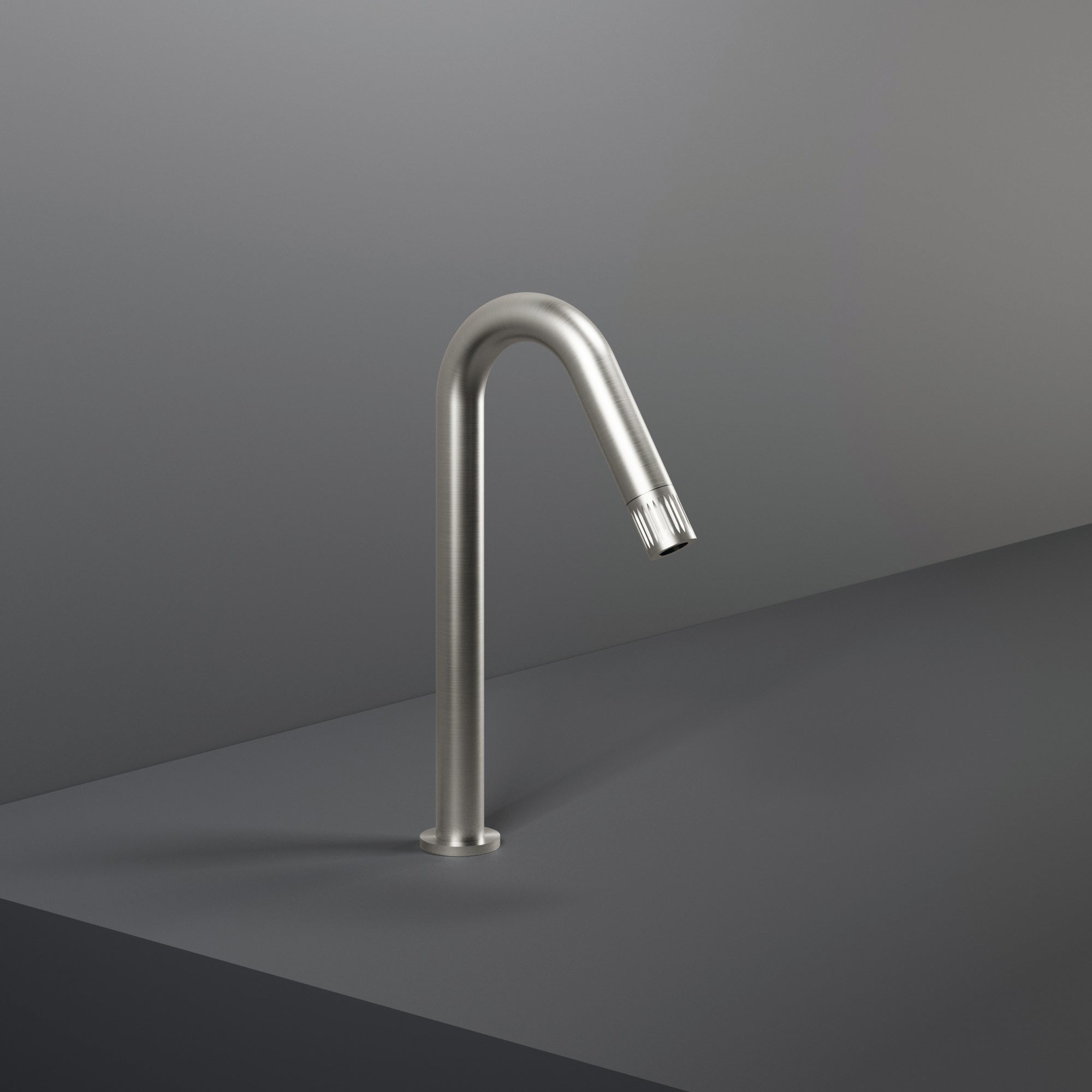 Schwenkbare Spültischbatterie aus gebürstetem Edelstahl 316 (346 mm hoch) mit progressiver Kartusche im Auslauf