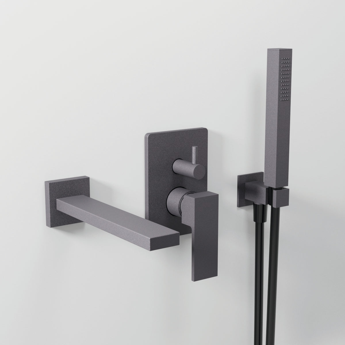 Built-in bath and shower mixer with shower set and mechanical diverter.