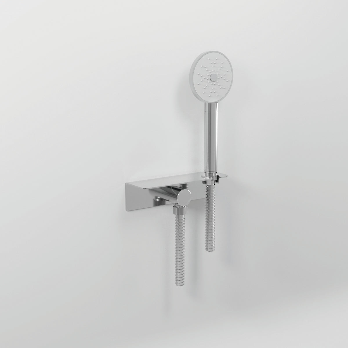 Handshower set with water supply, integrated shelf, Ø90mms. single function handshower and 1500mms. 1/2" FF conical.