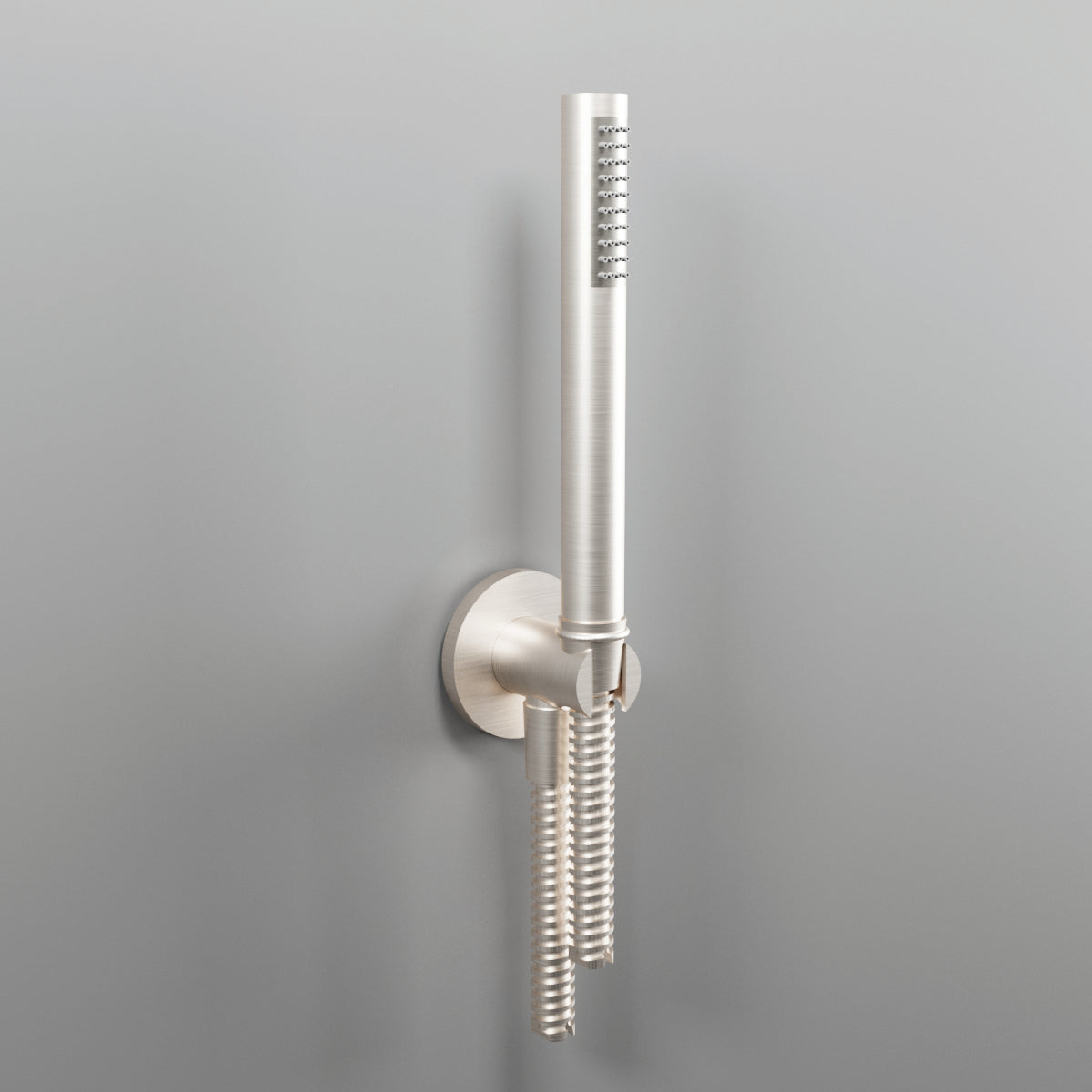 ABS shower set with water supply elbow, fixed bracket, ABS single function handshower and 1500 mms flexible hose, 1/2” FF conical.