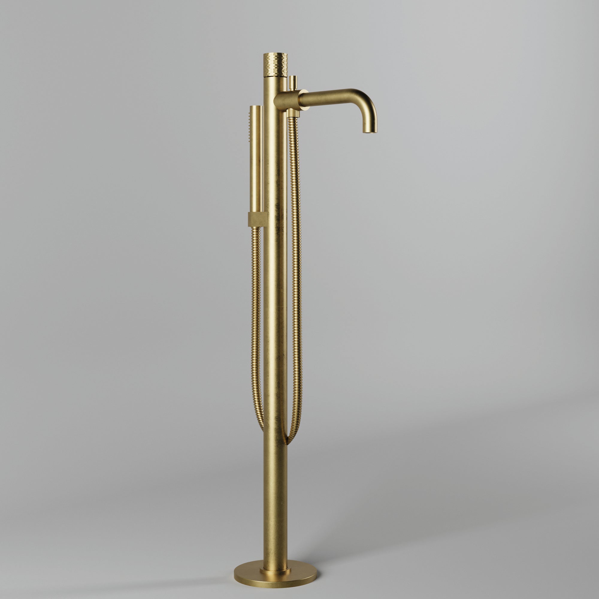 Floor mounted bath mixer with shower set.