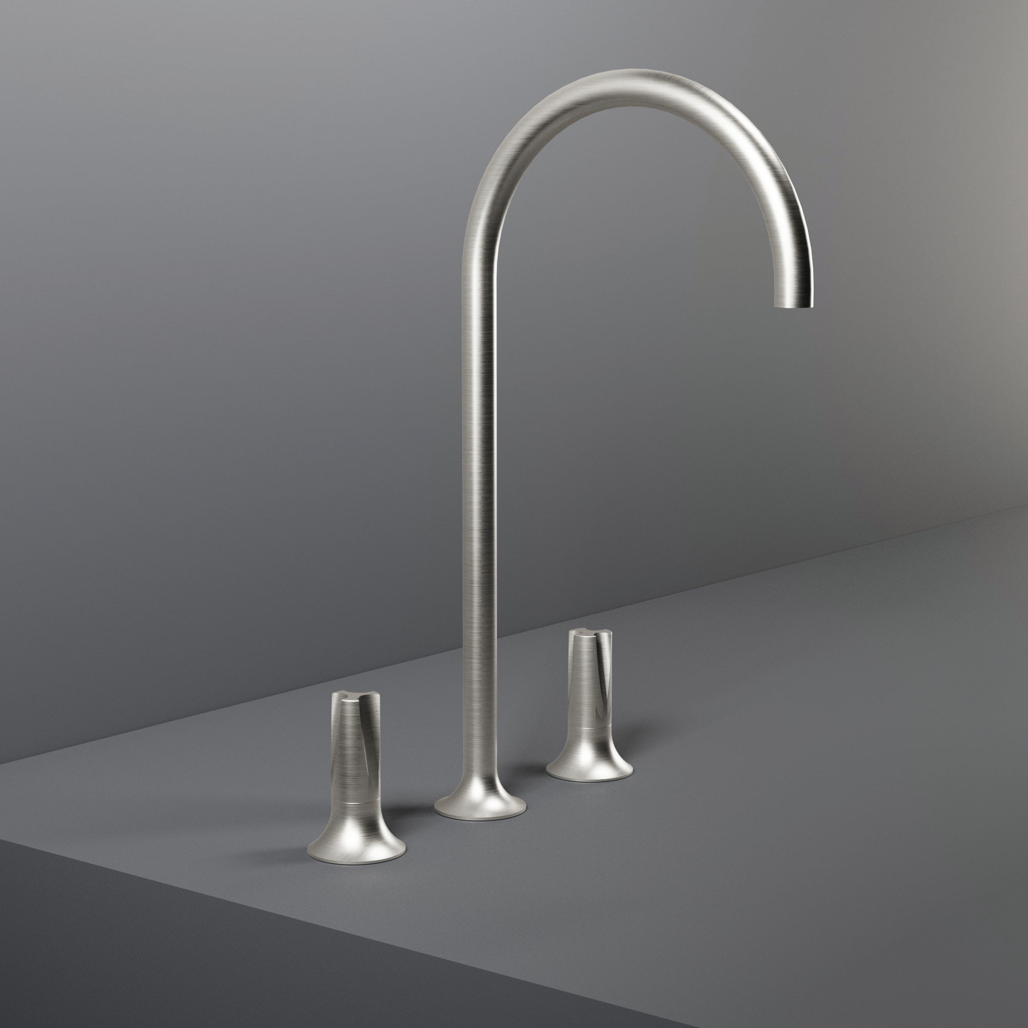Grupo lavabo de encimera 3 orificios en acero cepillado 316 con caño alto