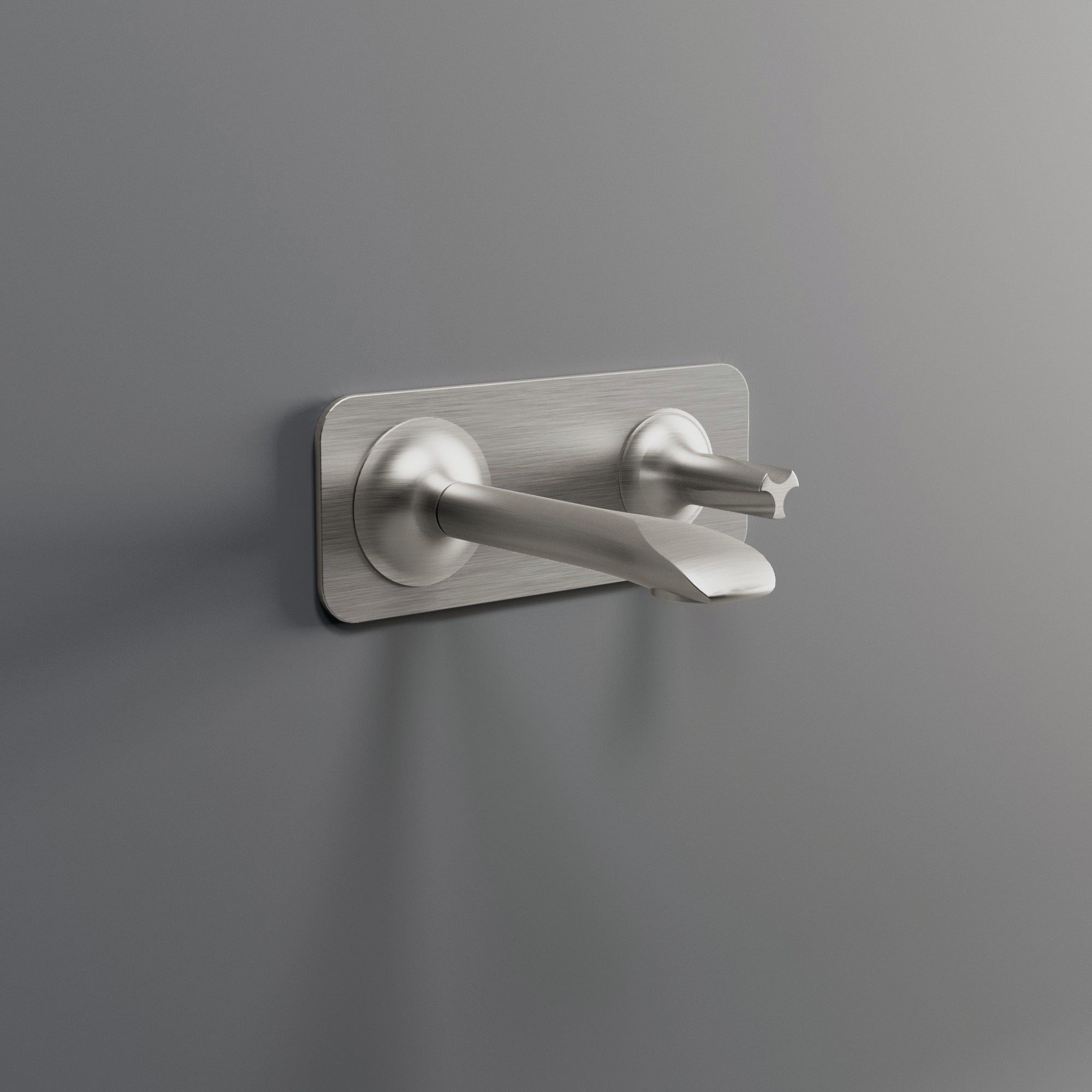 Mitigeur encastré mural avec bec/douchette extractible, plaque en acier brossé 316, cartouche progressive. Usage : douche. Installation horizontale